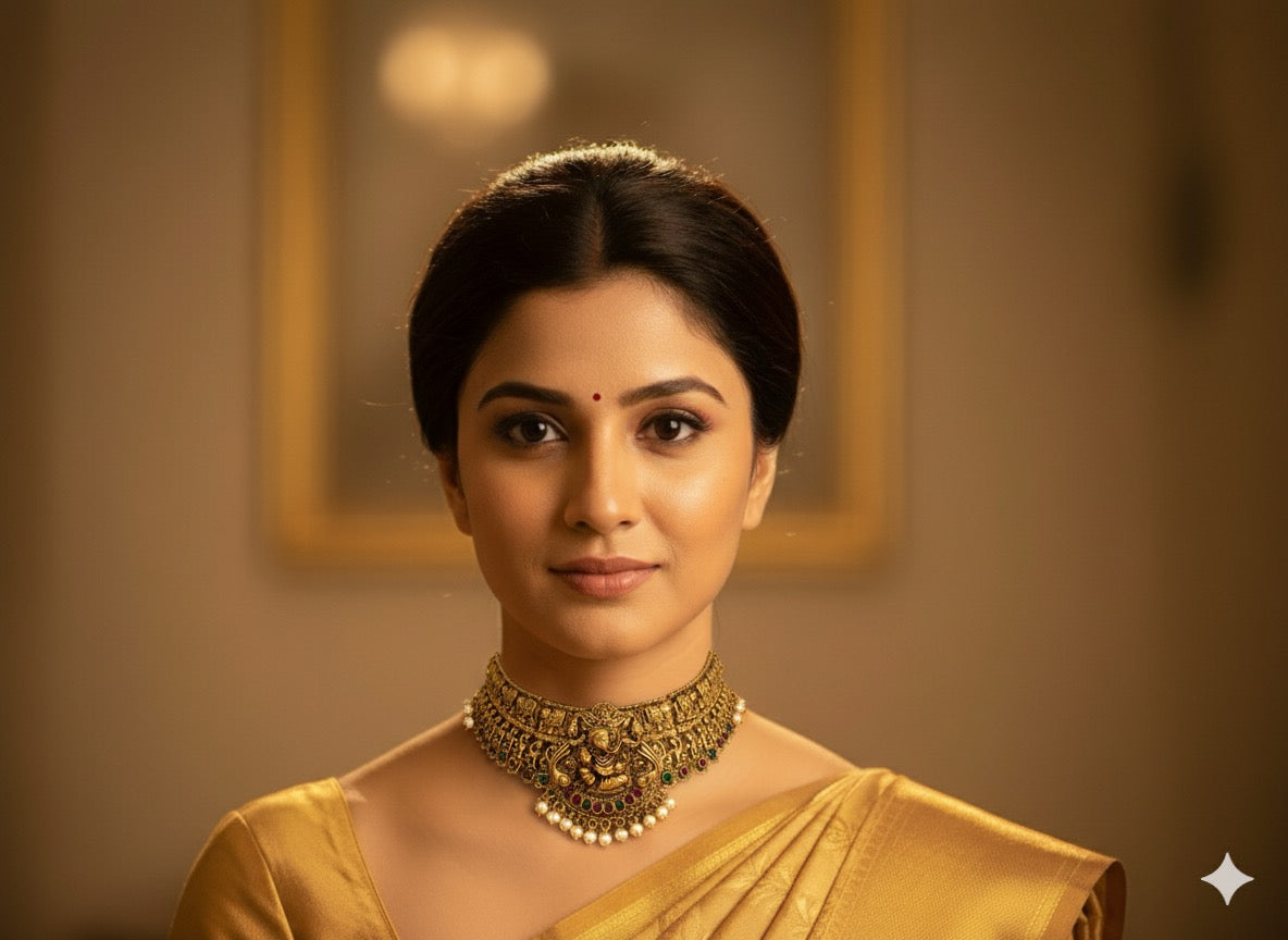 Elevate your festive and bridal look with the Laxmi Pendant Temple Choker, a stunning piece inspired by traditional goddess jewelry. Crafted with intricate kundan work, this gold-toned choker embodies the divine elegance of Goddess Laxmi, making it perfect for Navratri, Durga Puja, and other cultural celebrations. Its detailed design complements ethnic attire beautifully, adding a regal touch to your ensemble. Pair it with matching earrings and a simple saree or lehenga to highlight its craftsmanship and create a sophisticated, temple-inspired statement. Ideal for those seeking authentic style with a modern edge.